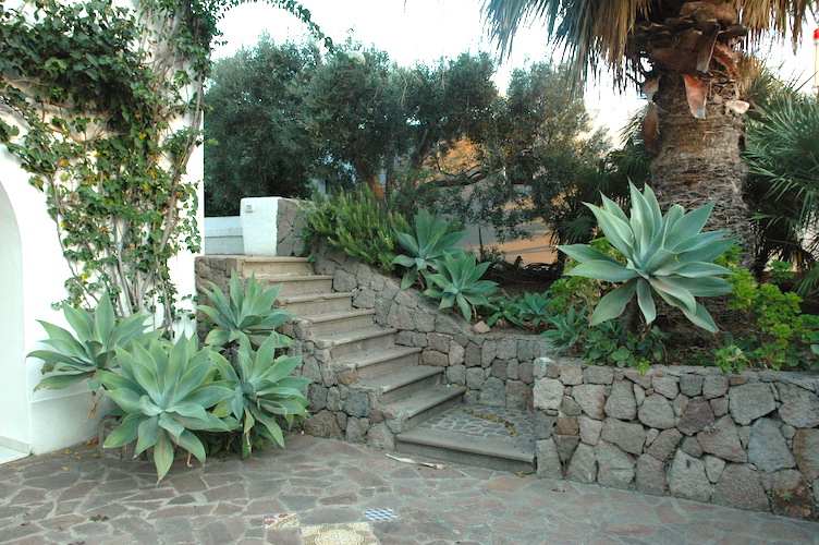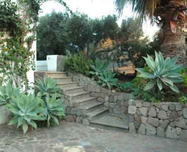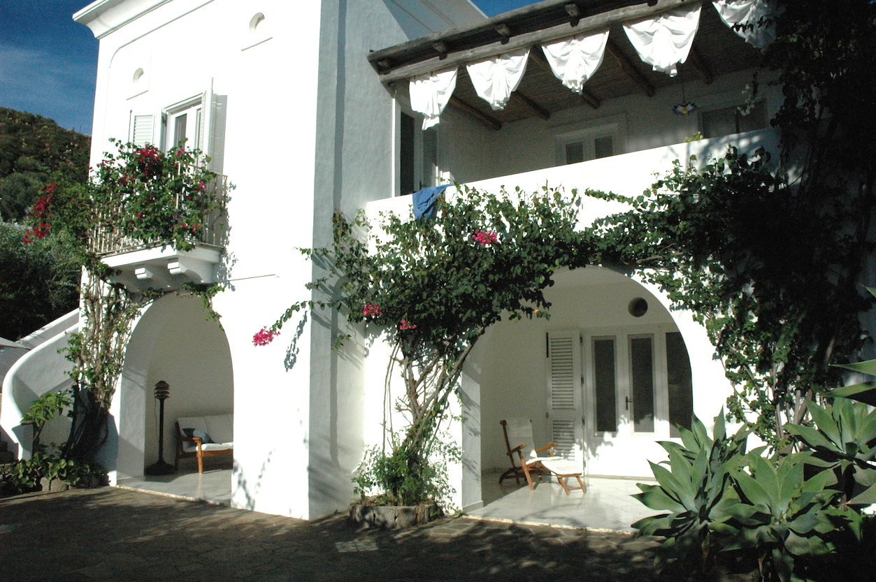 Isola di Panarea. A pochi passi dal mare con una splendia vista sulla baia di Drautto, vi proponiamo una prestigiosa villa circondata da un grande giardino piantumato con numerose piante mediterranee. La casa si sviluppa in 2 livelli e mantiene la classica impostazione della case eoliche. Nel patio si trova una grande camera con camino e un bagno. Scendendo due gradini c’è poi una zona separata con un’altra grande camera matrimoniale, un bagno e un piccolo terrazzino. Al piano primo c’è un grande soggiorno, la cucina, un’altra camera matrimoniale con il suo bagno e un ampio terrazzo. Completamente separata c’è poi una depandance con una camera e il suo bagno. Il giardino esterno è attrezzato con un antico forno a legna e un angolo cottura.