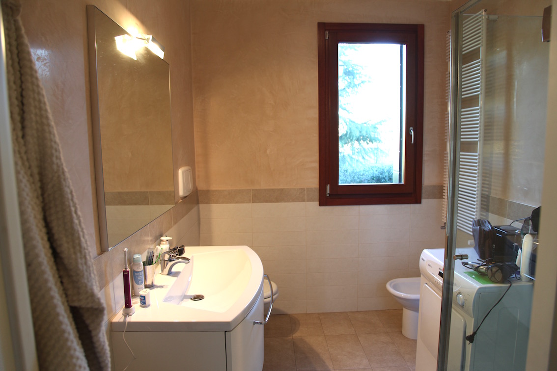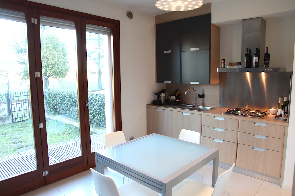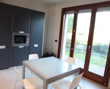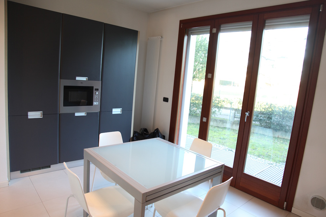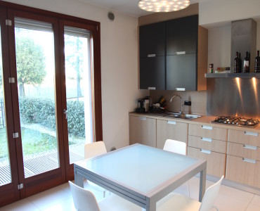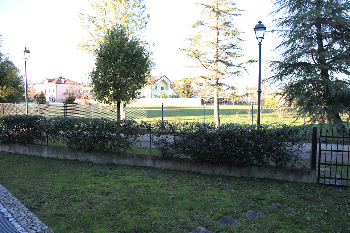 Noventa Padovana. All’interno di un elegante contesto residenziale, vi proponiamo un appartamento dal design moderno e con ampie vetrate che accedono al giardino di proprietà esclusiva che si affaccia ad un parco di una villa, quindi gode di assoluta privacy. L’appartamento si compone di ampio soggiorno cucina, separato da un elemento centrale che divide la zona pranzo cucina dal living attrezzato un con grande divano e zona TV, una grande camera matrimoniale e un bagno finestrato con doccia. Ampio garage nel piano interrato. L’appartamento è al piano terra di un elegante villa con androne d’ingresso a doppia altezza dove c’è anche l’ascensore che collega il piano con il garage sottostante.