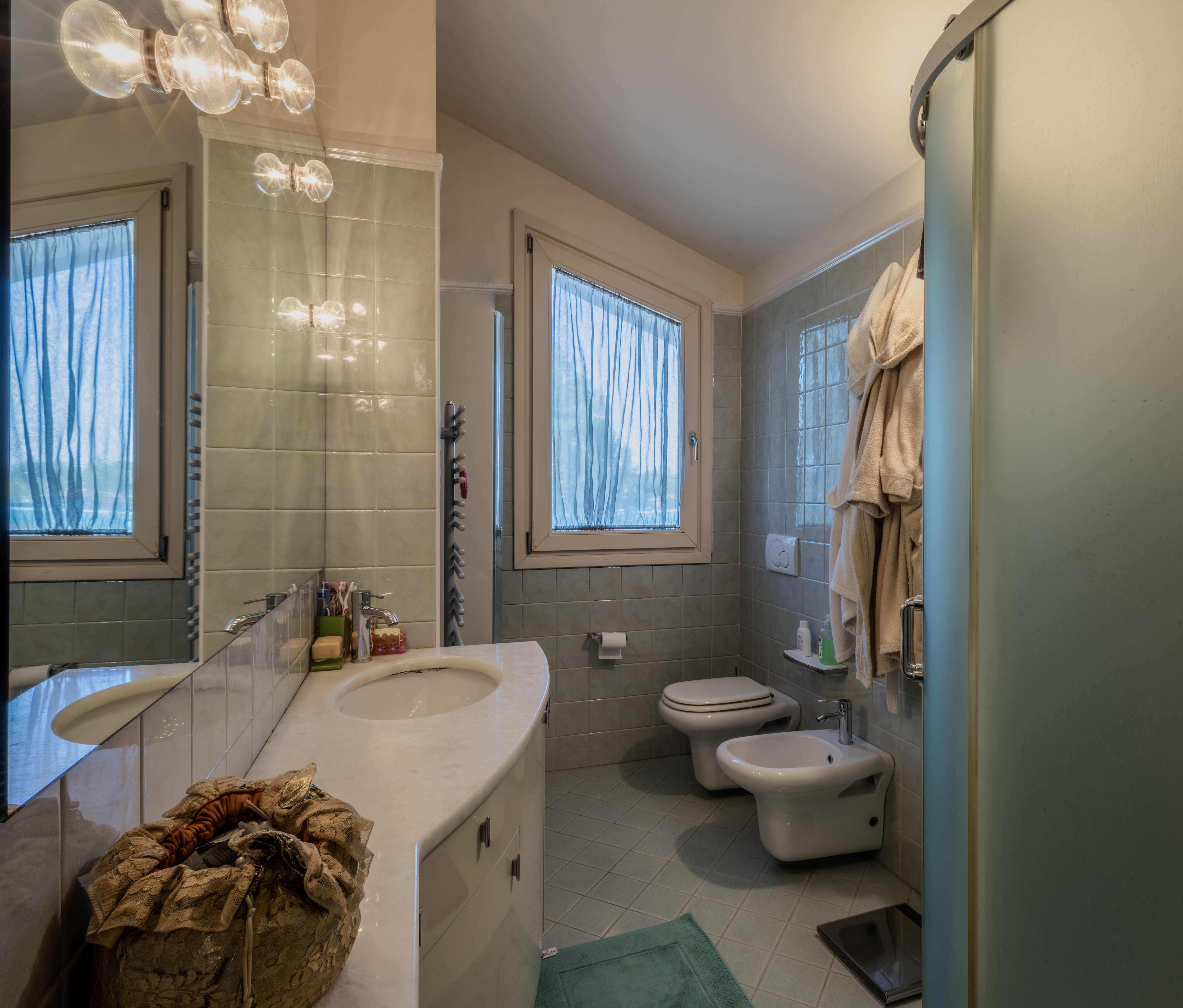 Vi proponiamo un luminoso e ampio appartamento situato nella zona residenziale più esclusiva di Noventa Padovana. L’abitazione si trova al secondo e ultimo piano e si sviluppa in 2 livelli: al piano secondo ci accoglie un’ampia zona living che è caratterizzato da un grande tavolo da pranzo e una spaziosa zona salotto; un gradevole poggiolo completa la zona giorno. La cucina è ben nascosta da un elegante libreria che diventa diventa zona colazione nella parte antistante la cucina. Sempre allo stesso piano troviamo poi un ampio bagno finestrato con vasca e un comodissimo ripostiglio lavanderia. Salendo al piano superiore, troviamo 3 camere, di cui una matrimoniale con balcone e 2 singole entrambe attrezzate con piccola zona studio all’interno. Garage doppio al piano interrato del palazzo. L’abitazione è completa di impianto di aria condizionata e allarme sia volumetrico che perimetrale. Finiture esclusive caratterizzano questa elegante casa. Questa proposta è un esclusiva Aedilis concetti d’abitare. Per info e visite 348. 5328752.